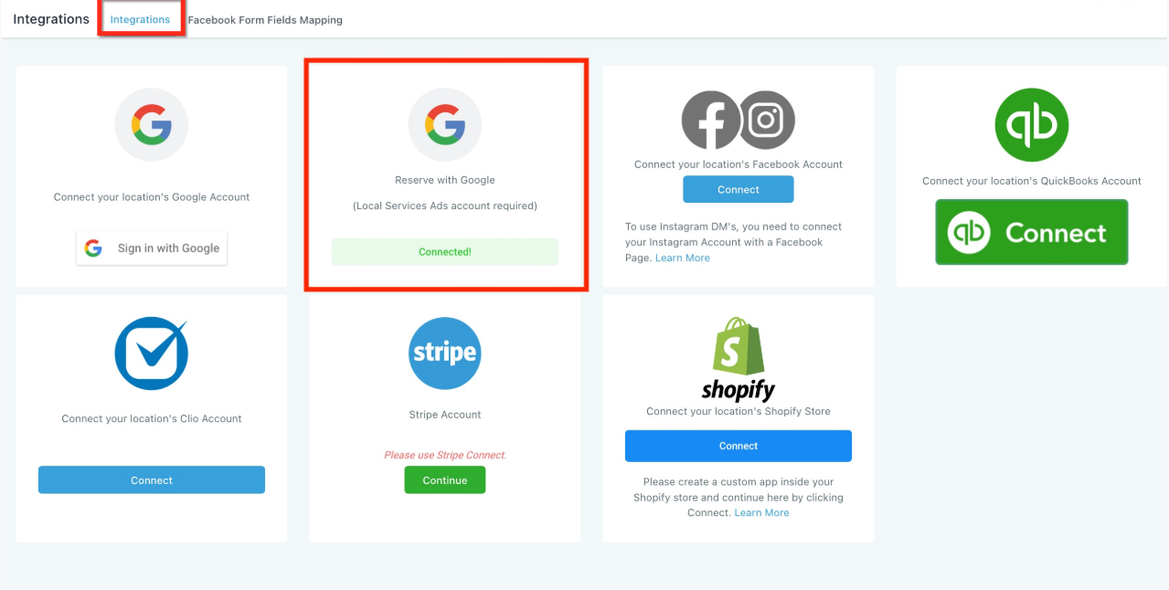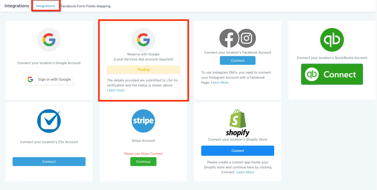 Only one Local Services Ads account can be linked per integration.