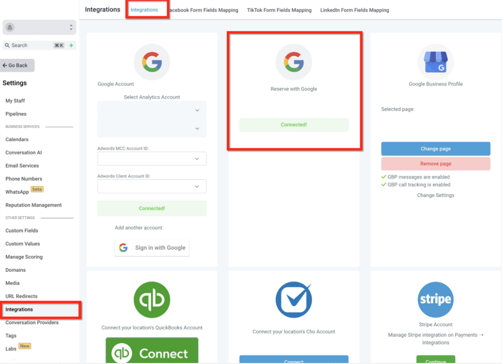 When verification is complete, the integration shows as connected. At this point, Reserve with Google is fully active and ready to accept bookings.