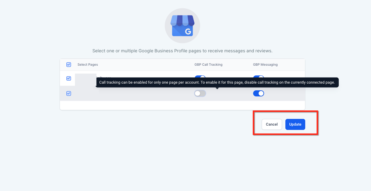 Only pages you have permission to manage can be connected. Messaging can be enabled for multiple pages at the same time, but call tracking is limited to one page per account. Changes to settings may take a short time to reflect publicly.