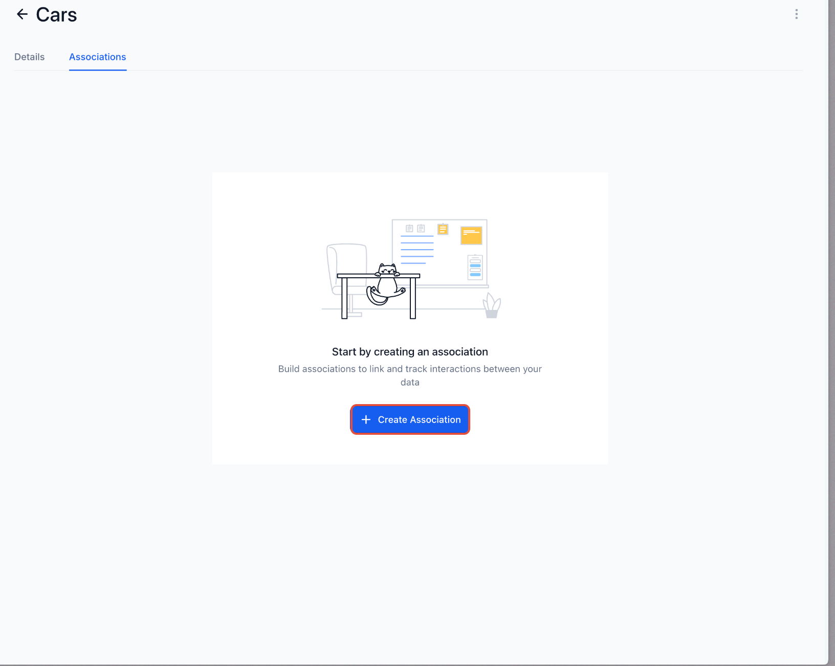 What to do: Click Create Association to begin setting up a relationship between objects.