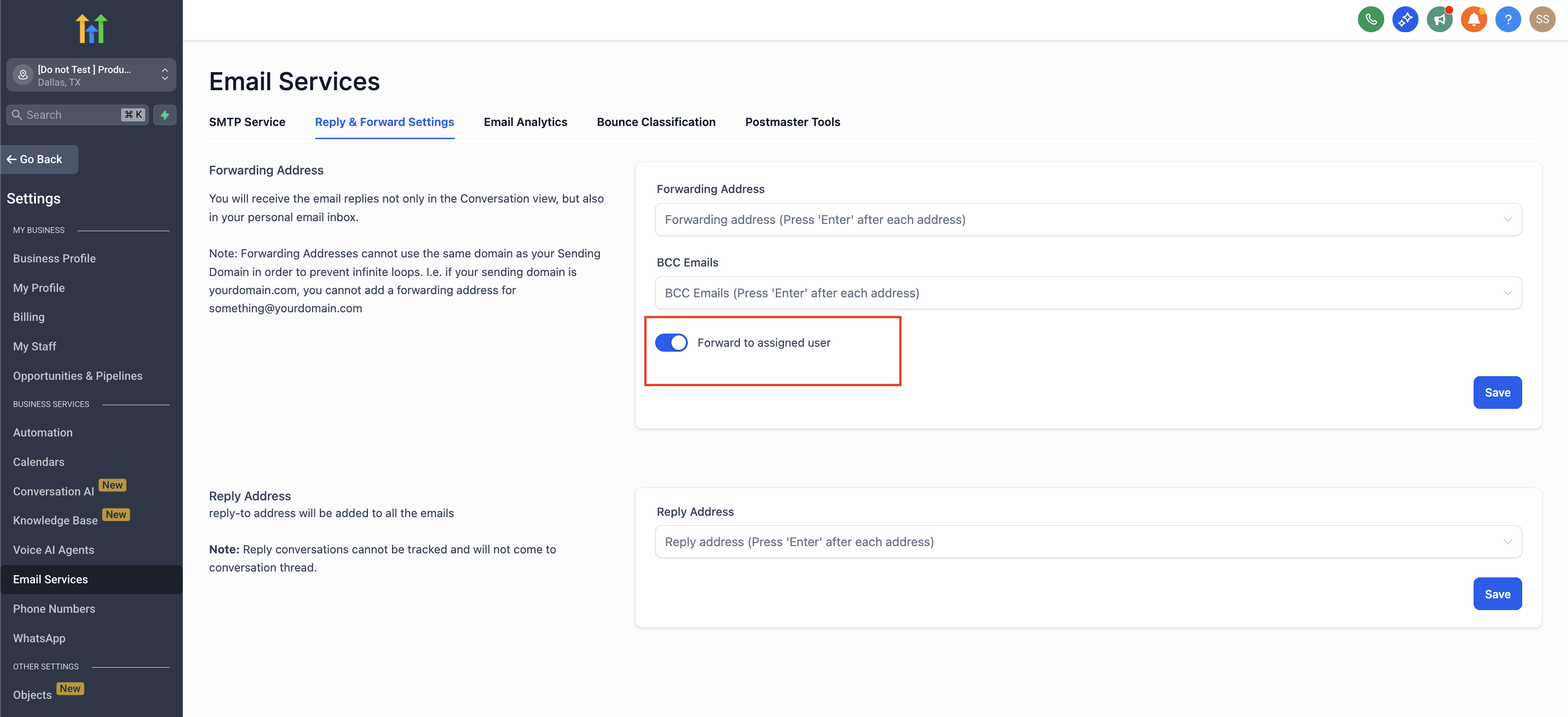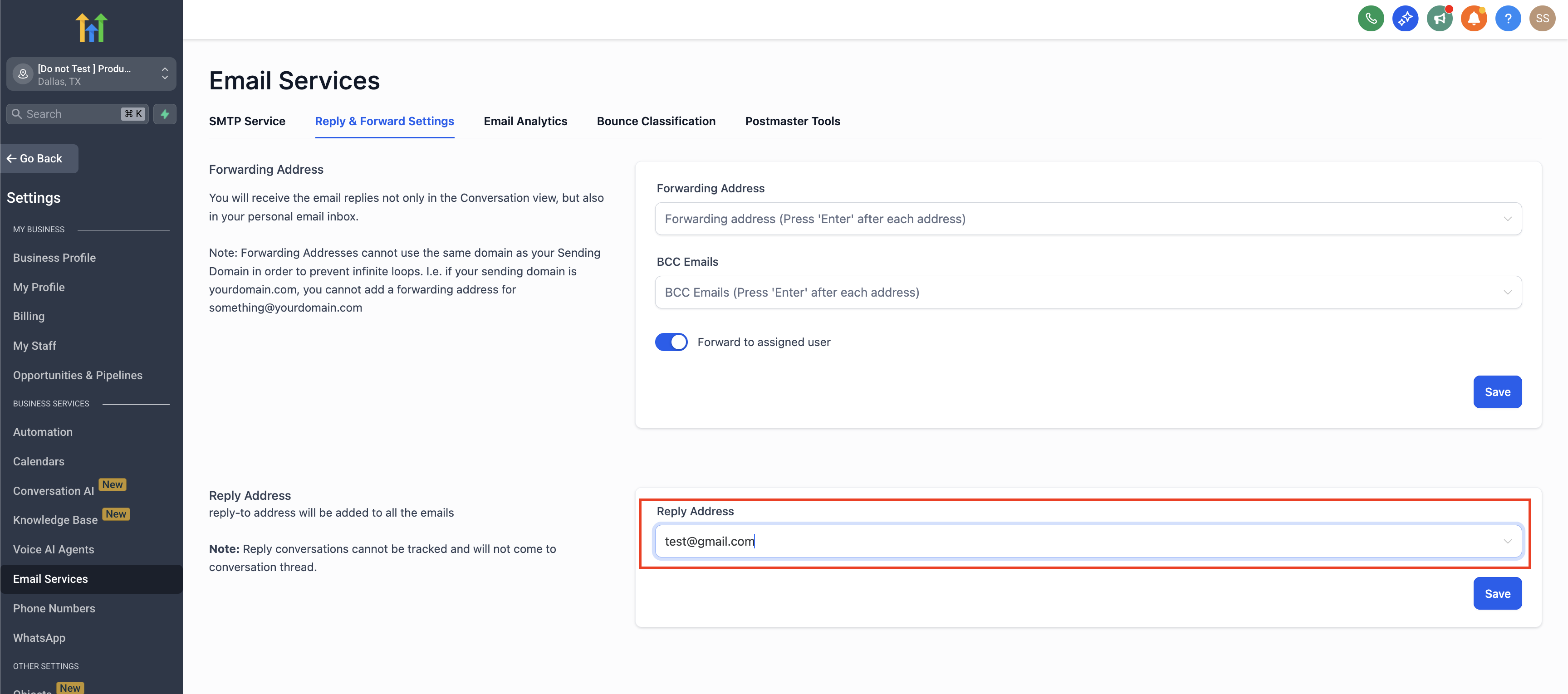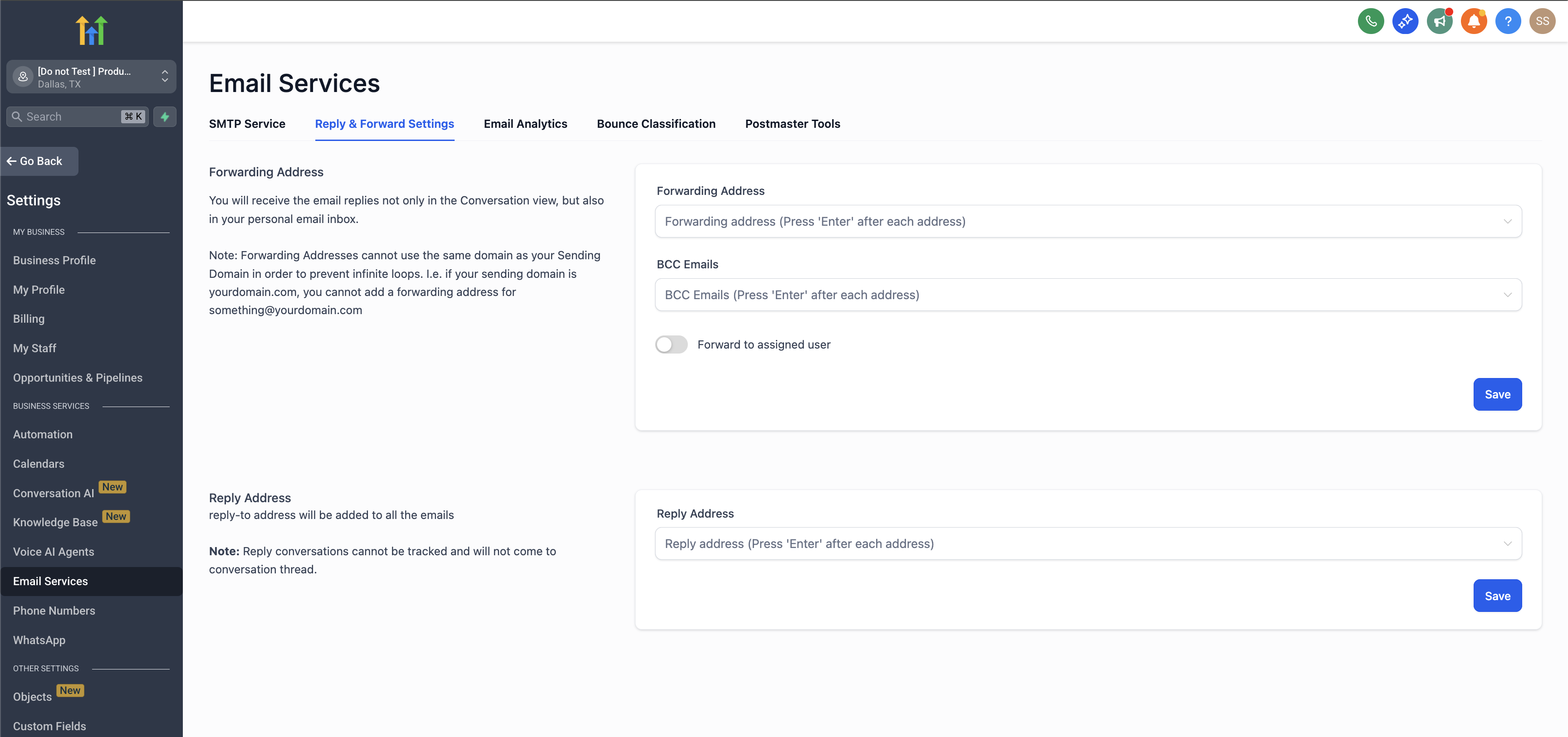 IMPORTANT: Forwarding address and BCC Emails ONLY work when using Mailgun and LC Email. We don't support other smtp providers.