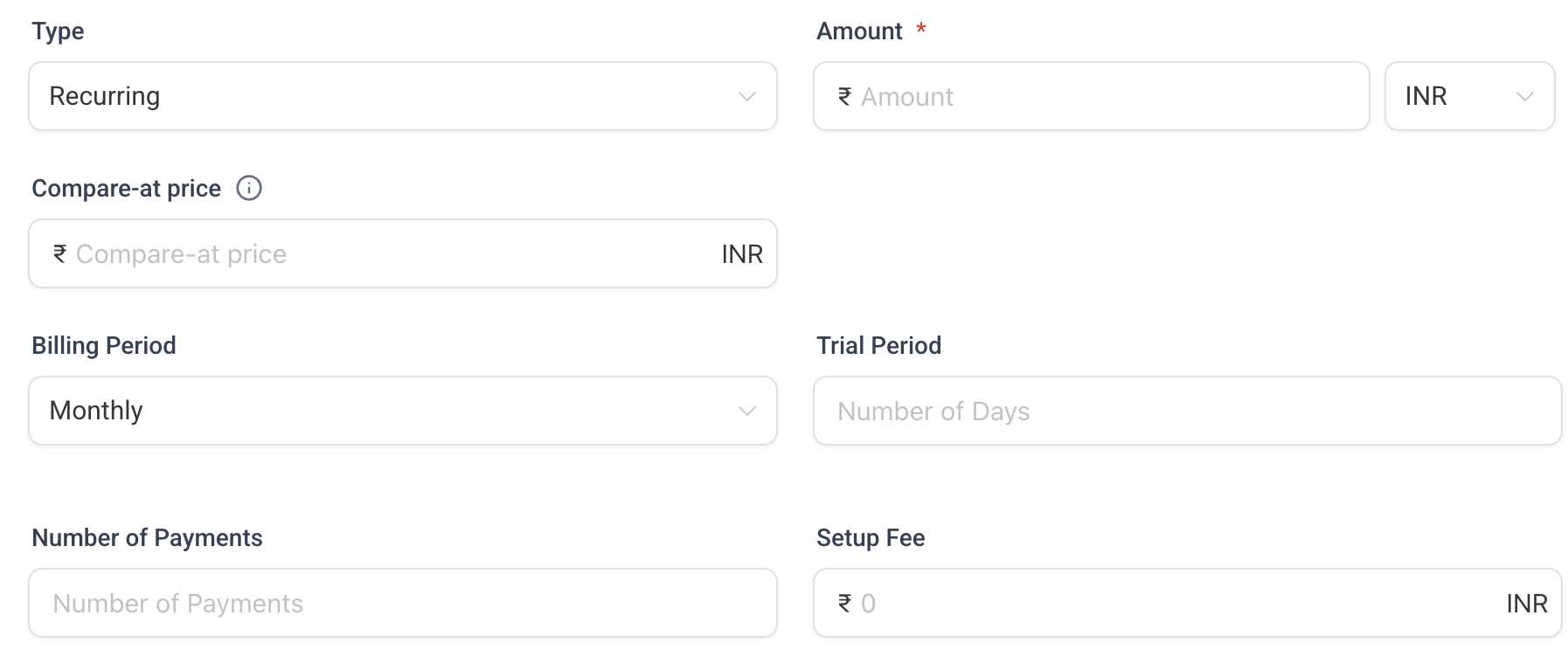 Recurring pricing allows you to define: