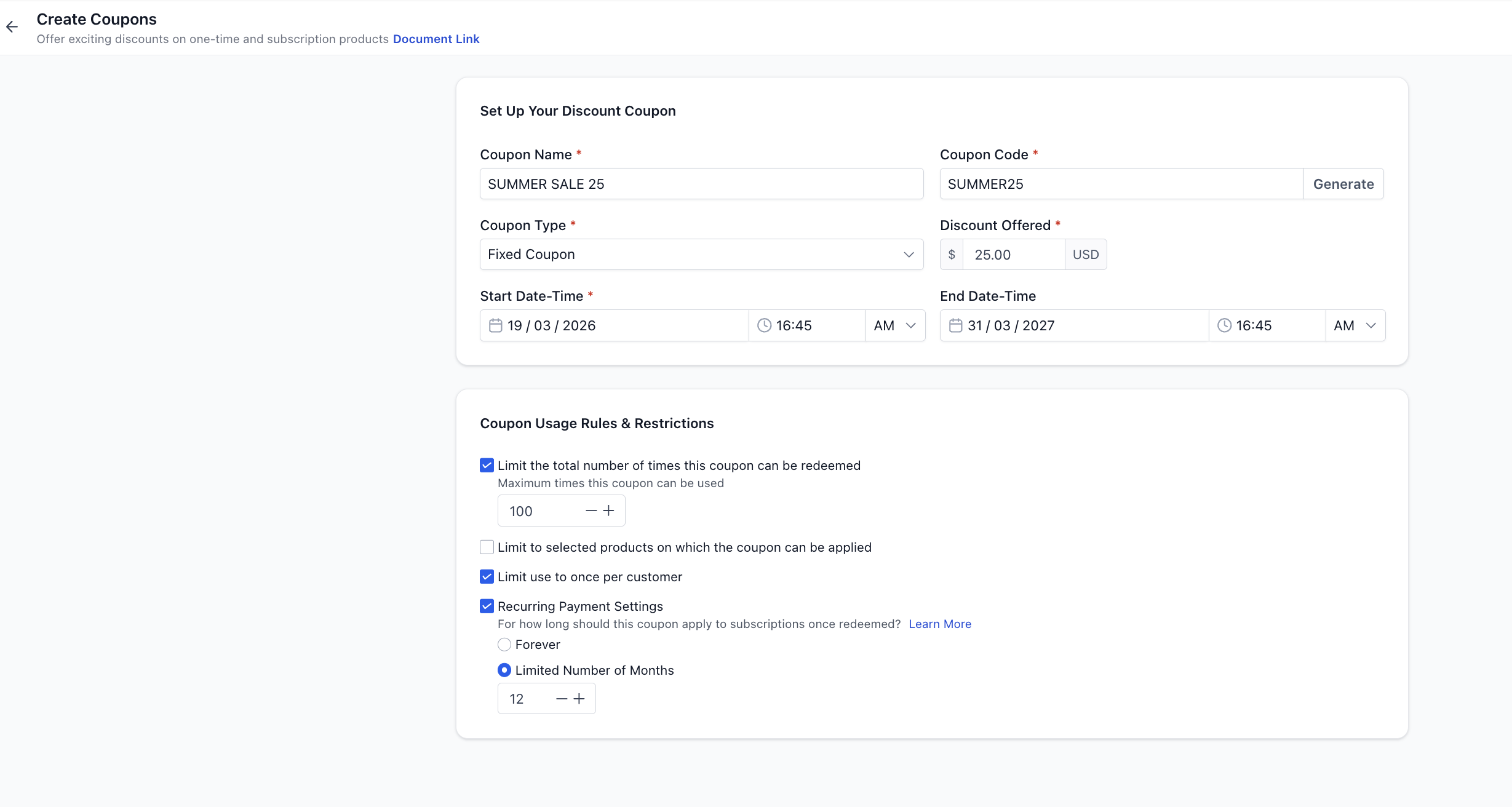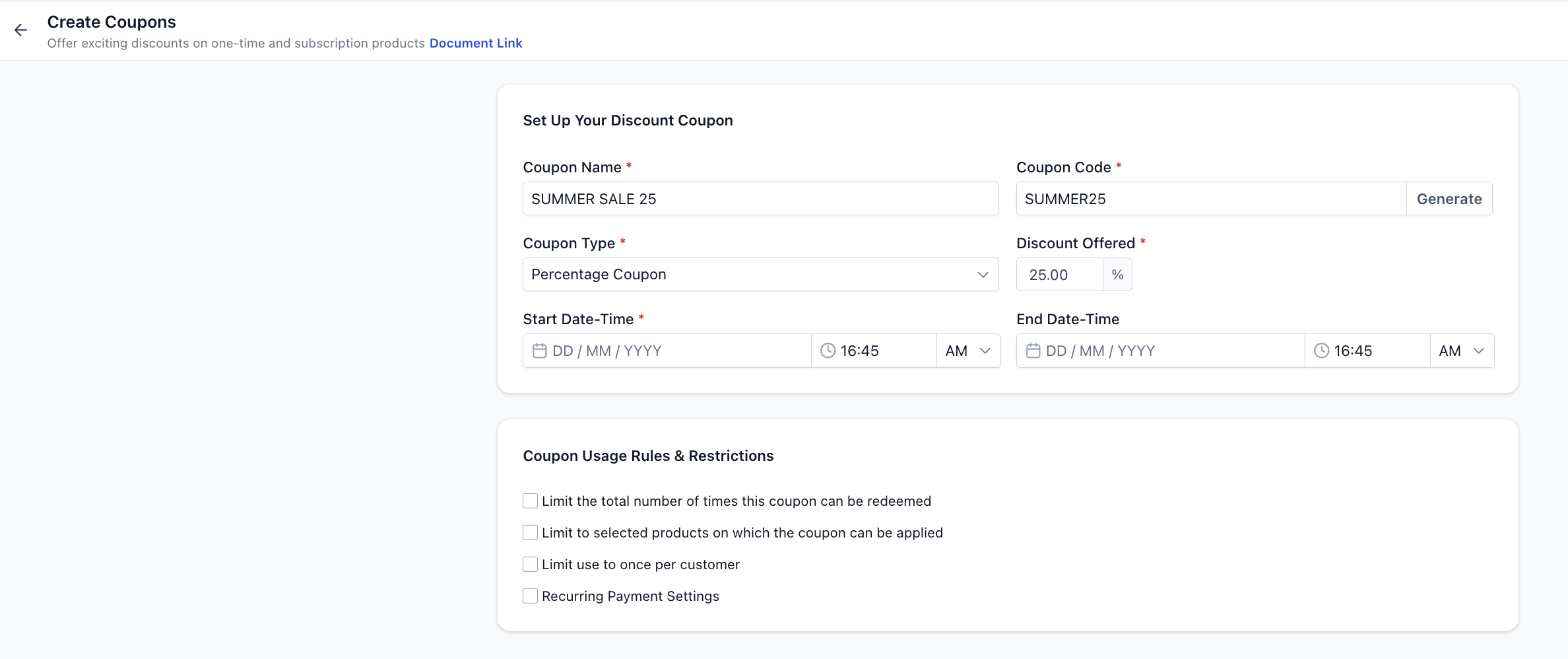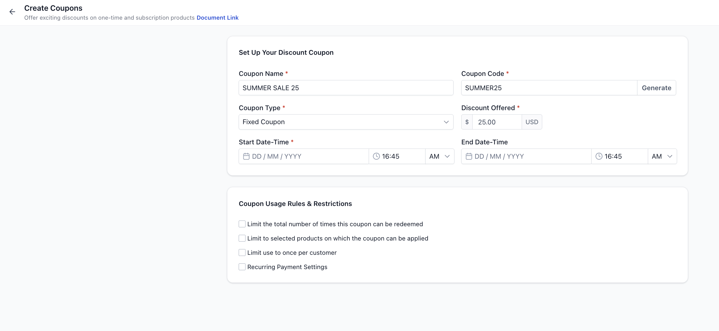 Start Date & Time → When the coupon becomes active