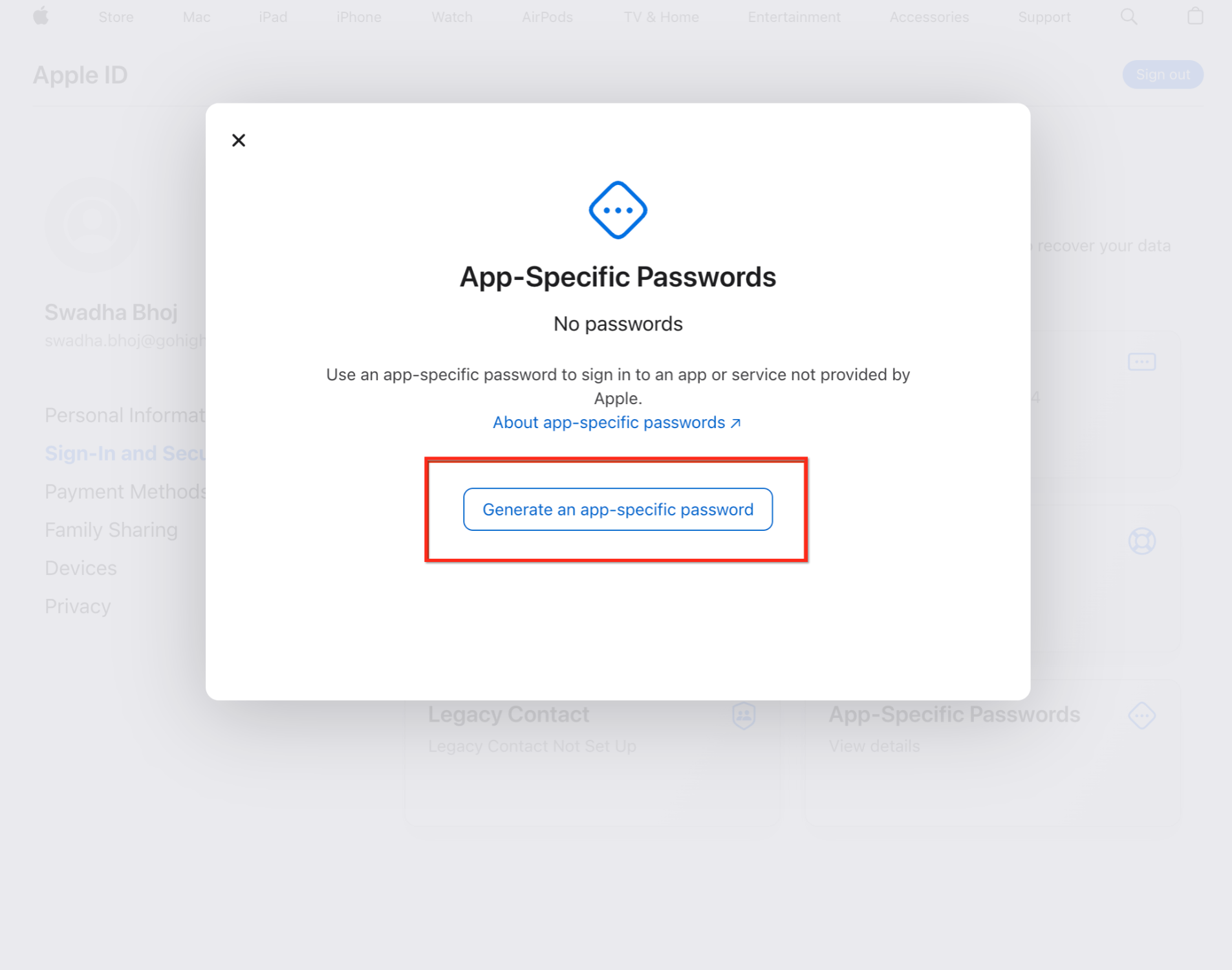 Generate an App-Specific Password