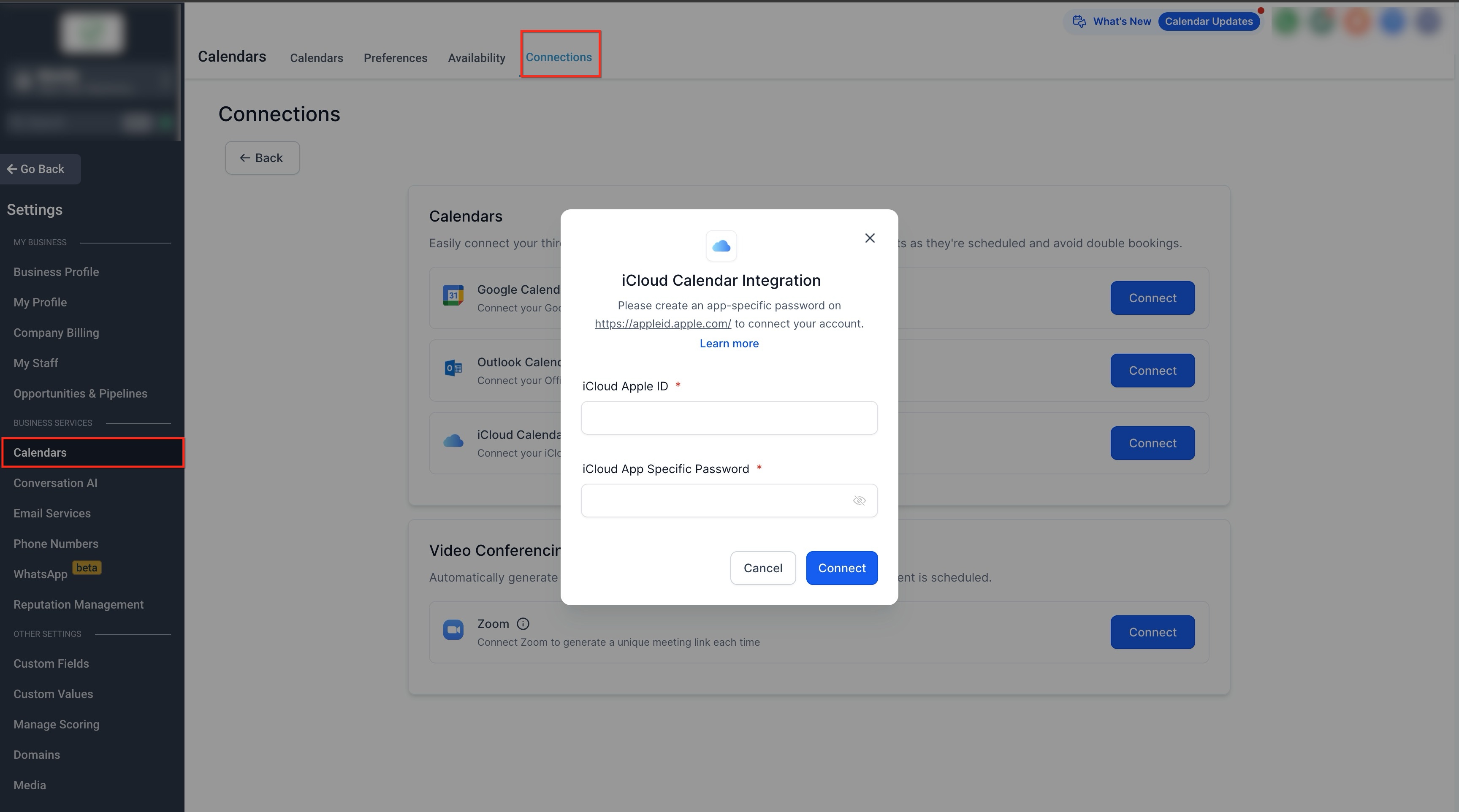 This guide explains how to connect an iCloud calendar to keep your appointments synchronized and availability accurate. Once connected, events from your iCloud calendar are reflected automatically, helping prevent double bookings and ensuring a smooth scheduling experience.