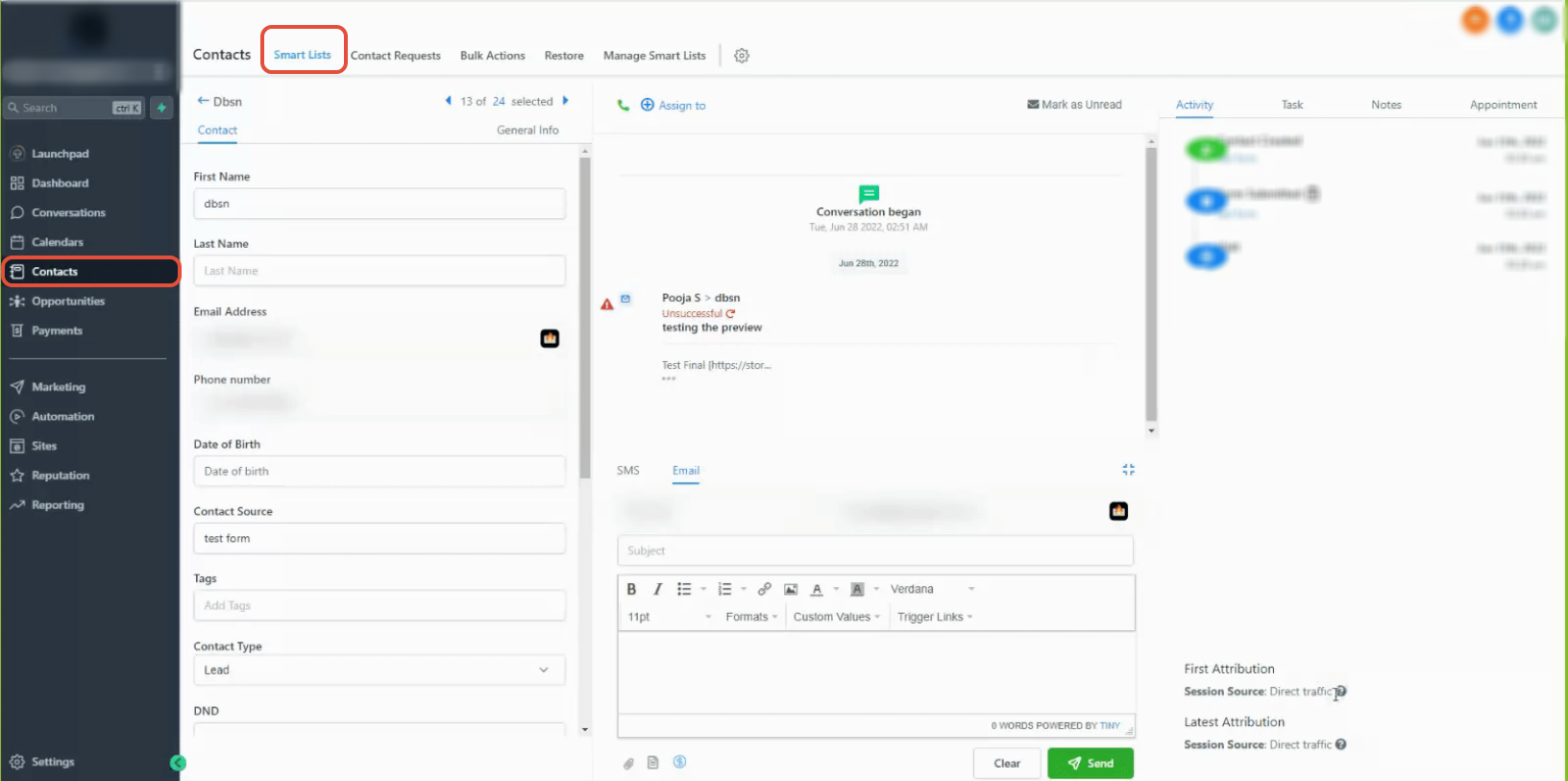 Attribution tracks the source of each contact based on how they first and most recently interacted with your business. This allows you to: