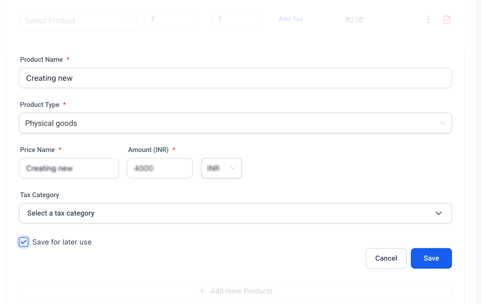 You can now add products on the fly by typing their name and pressing enter. This removes the need for multiple steps and helps you create invoices faster.