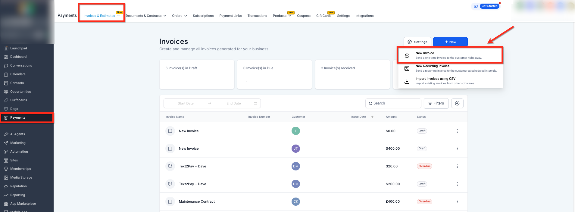 This view shows the invoices area where a PDF is generated when an invoice is downloaded or prepared for sending.