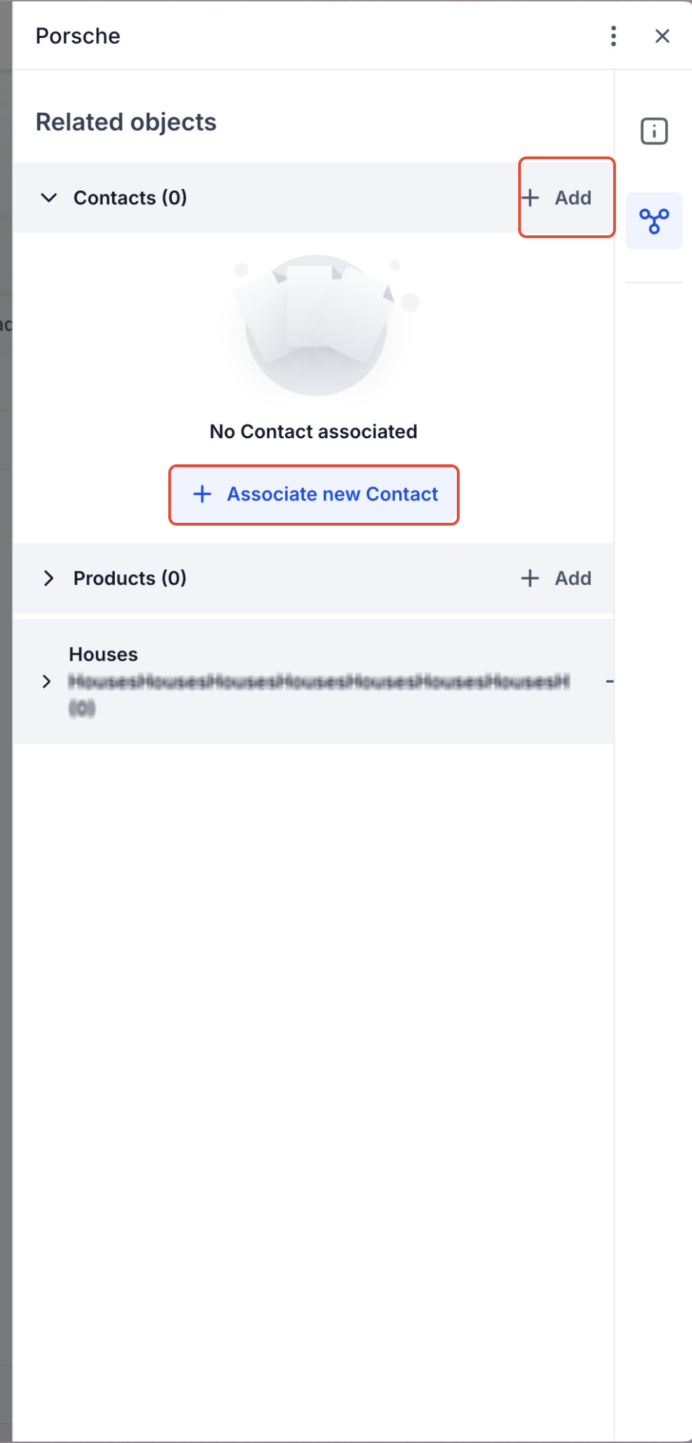 Once linked, associated records appear in the Related Objects panel for quick access.