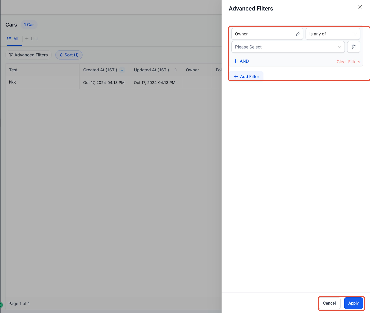 Advanced Filters allow you to quickly narrow down and locate specific records within your custom objects. By applying multiple conditions across fields, you can refine your data view and focus only on what matters most.