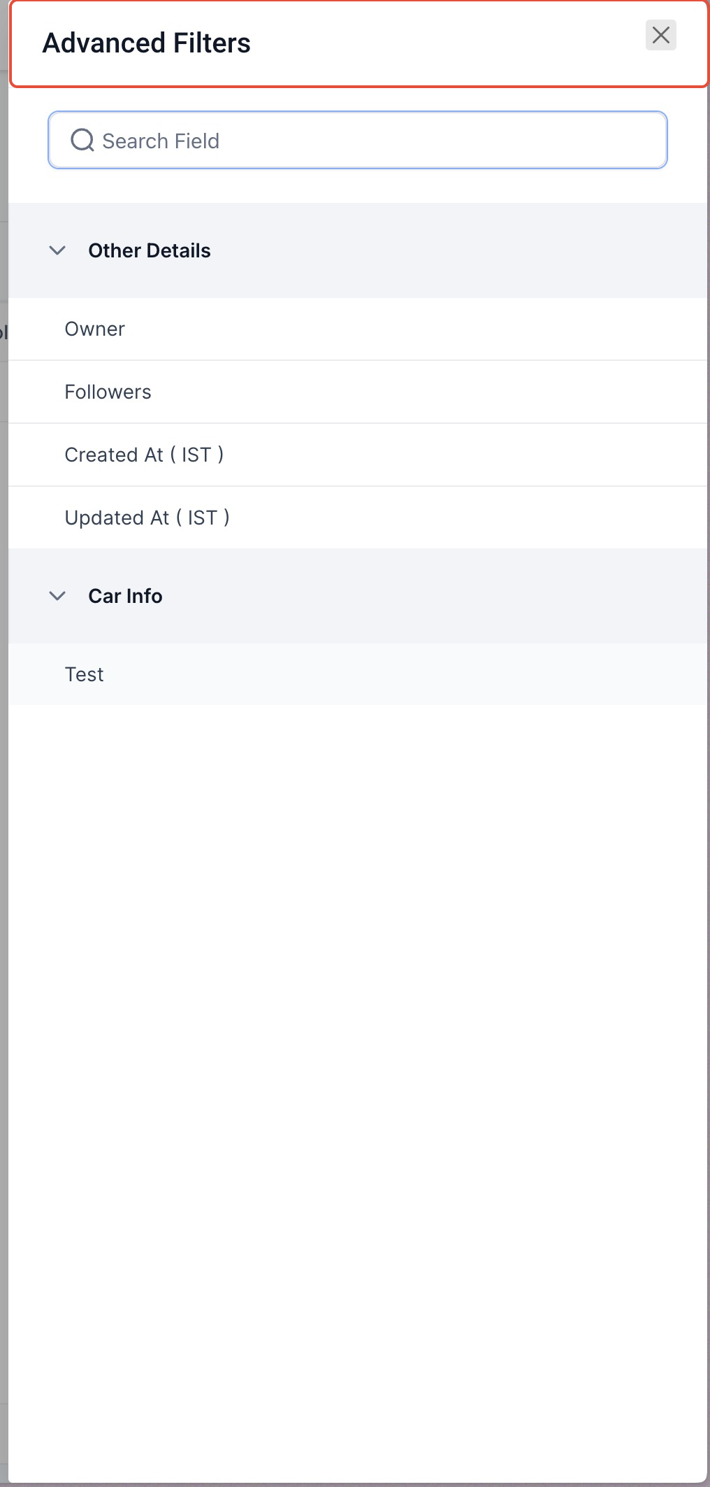 Advanced Filters help you search and segment your custom object data using multiple conditions. Instead of manually scanning records, you can apply filters across fields like owner, dates, or custom attributes to instantly find the right data.