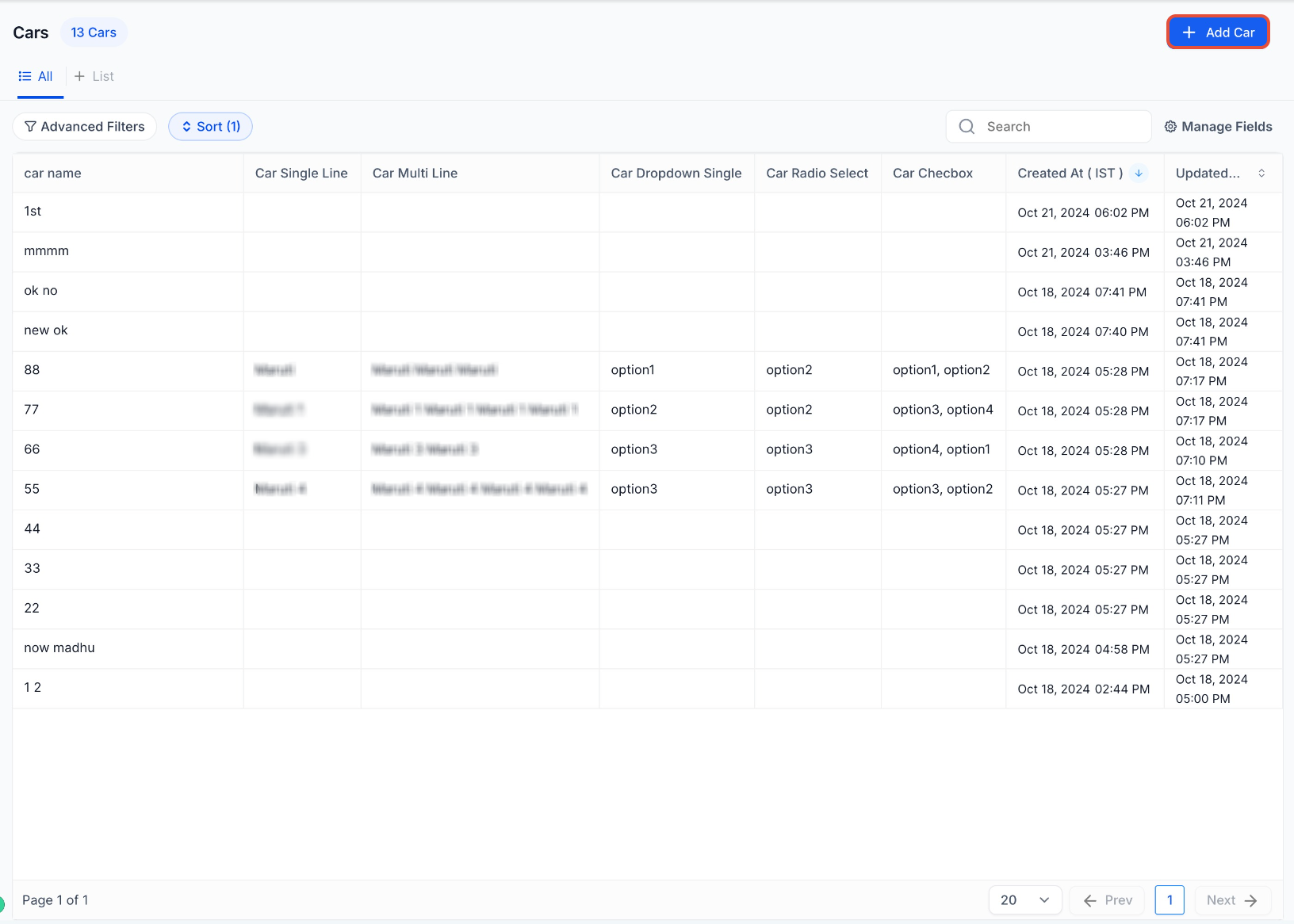 Custom Object List View displays your records in a structured table format with rows and columns, similar to a spreadsheet. This layout improves visibility and makes it easier to manage large sets of data without switching between multiple screens.