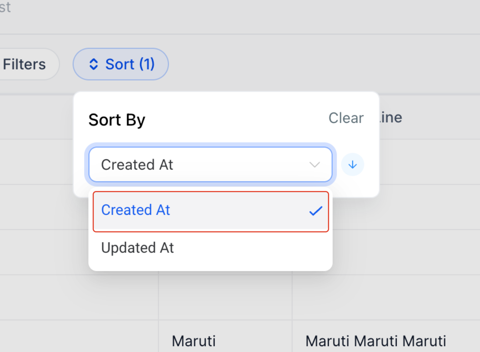 This image shows the sort dropdown menu with options like “Created At” and “Updated At.”