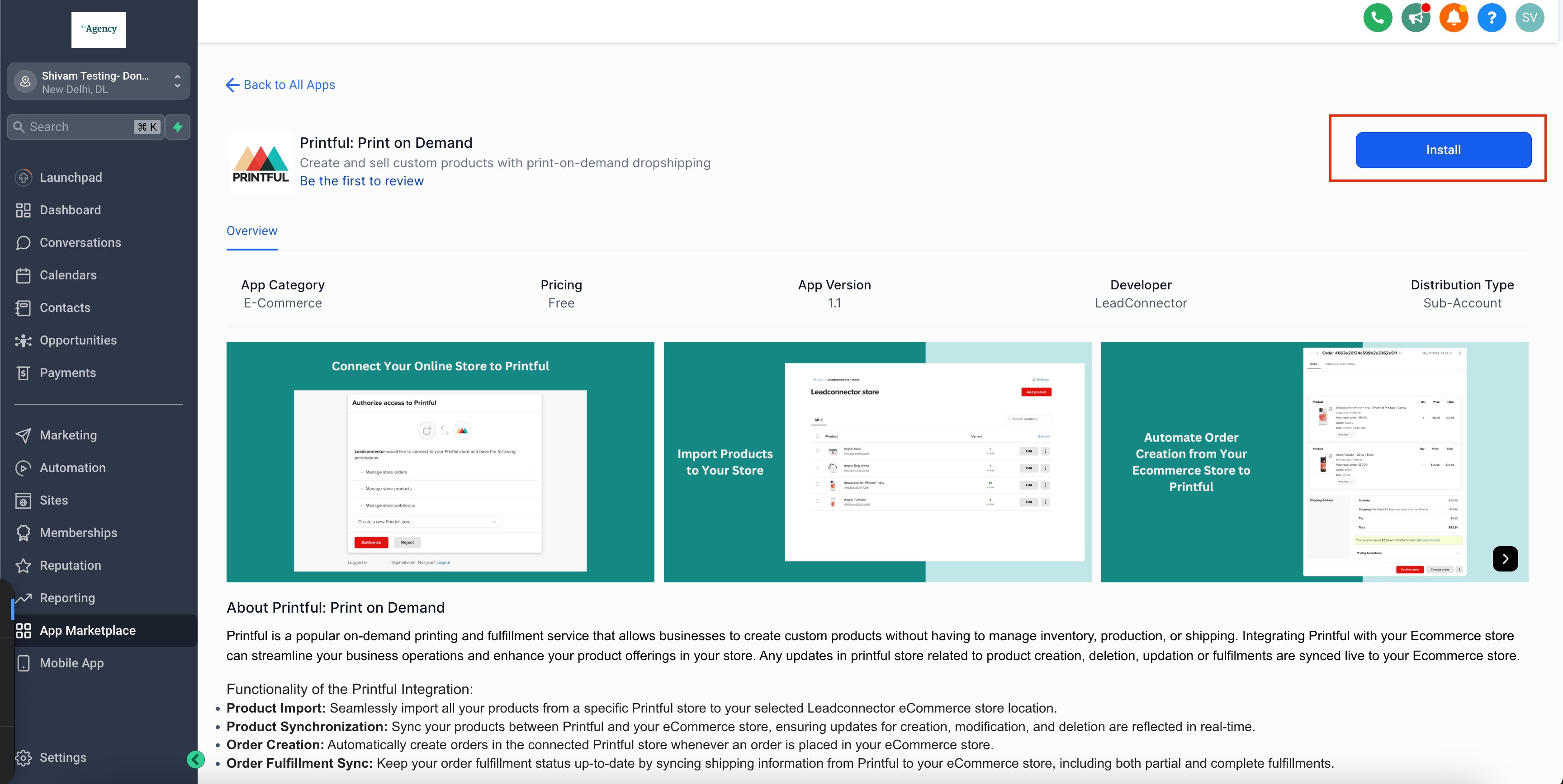 - Multi-Location Support: A single Printful store can be connected to multiple LeadConnector store locations.