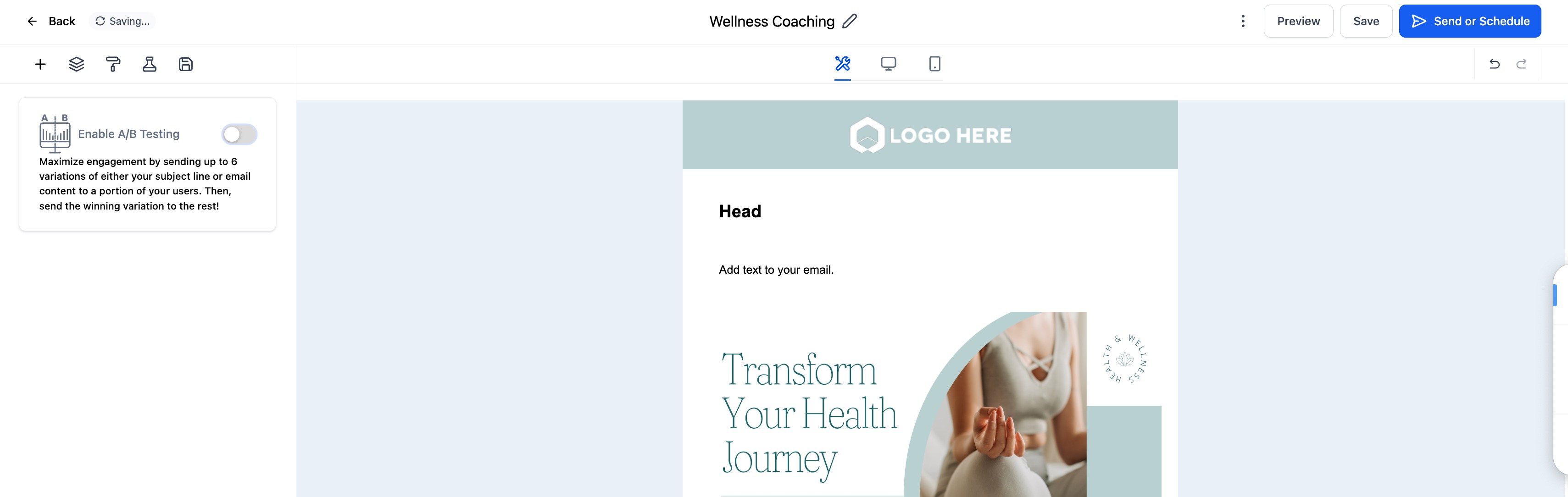 Boost your email performance with A/B Testing in the Email Builder. A/B testing allows you to send up to six variations of your email (either subject line or content) to a portion of your audience.