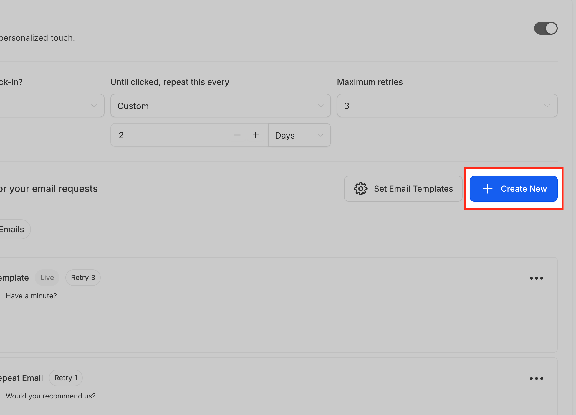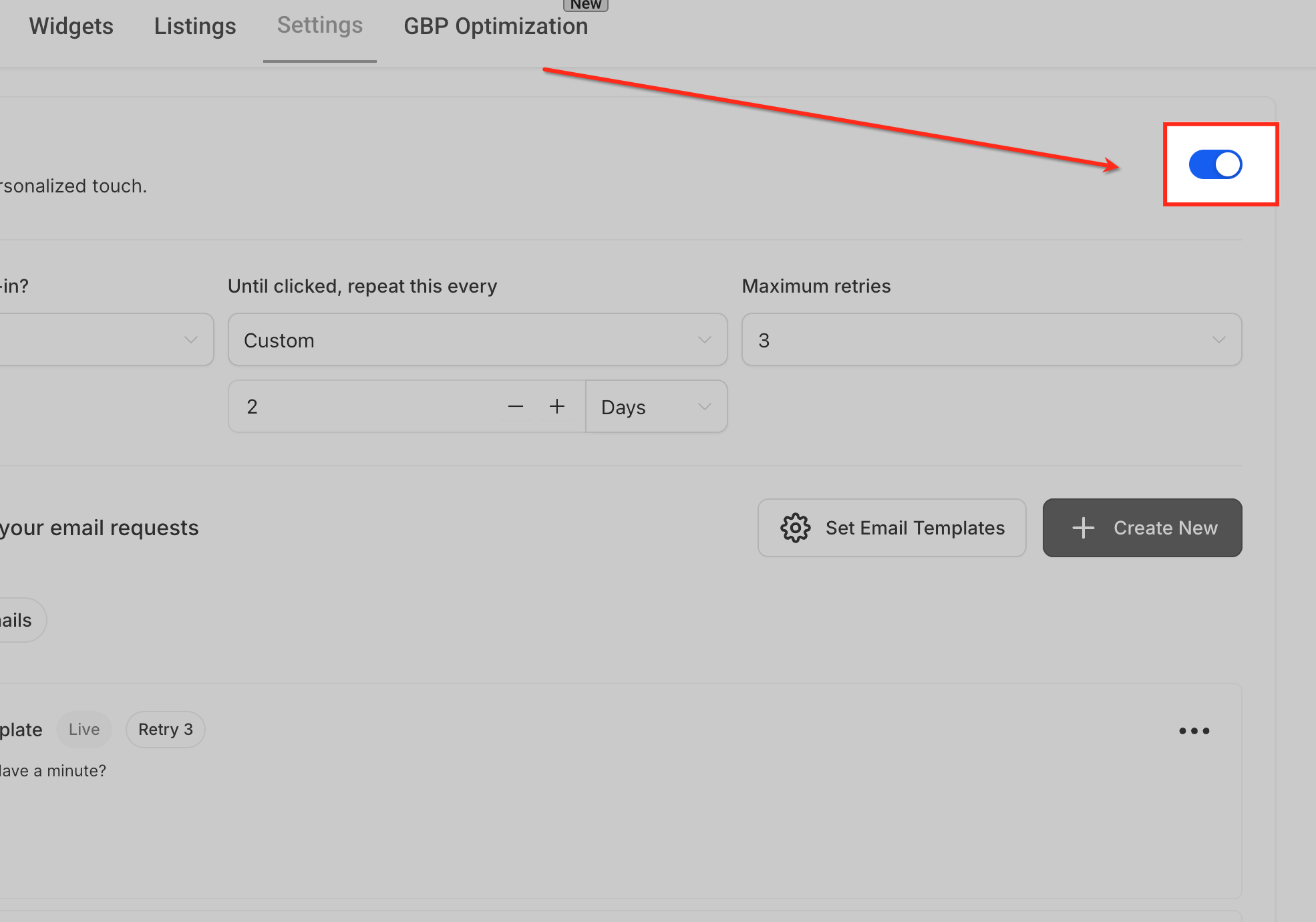 Here, you’ll see a toggle switch—just turn it ON to activate email requests. You can also decide: