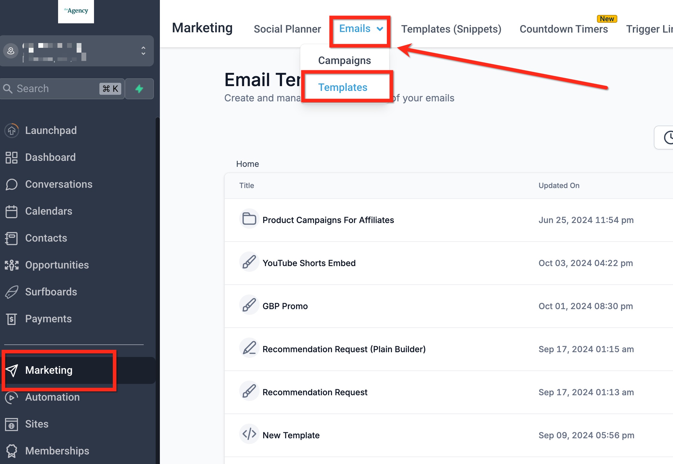 Step 1. Navigate to Marketing -> Email Templates to create your personalized email.