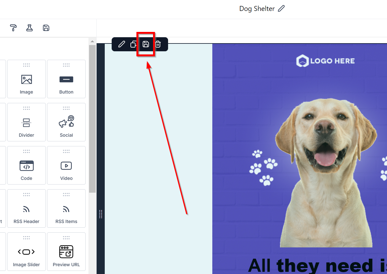 Step 3 | Hover over the element or layout and click on the "Save" icon