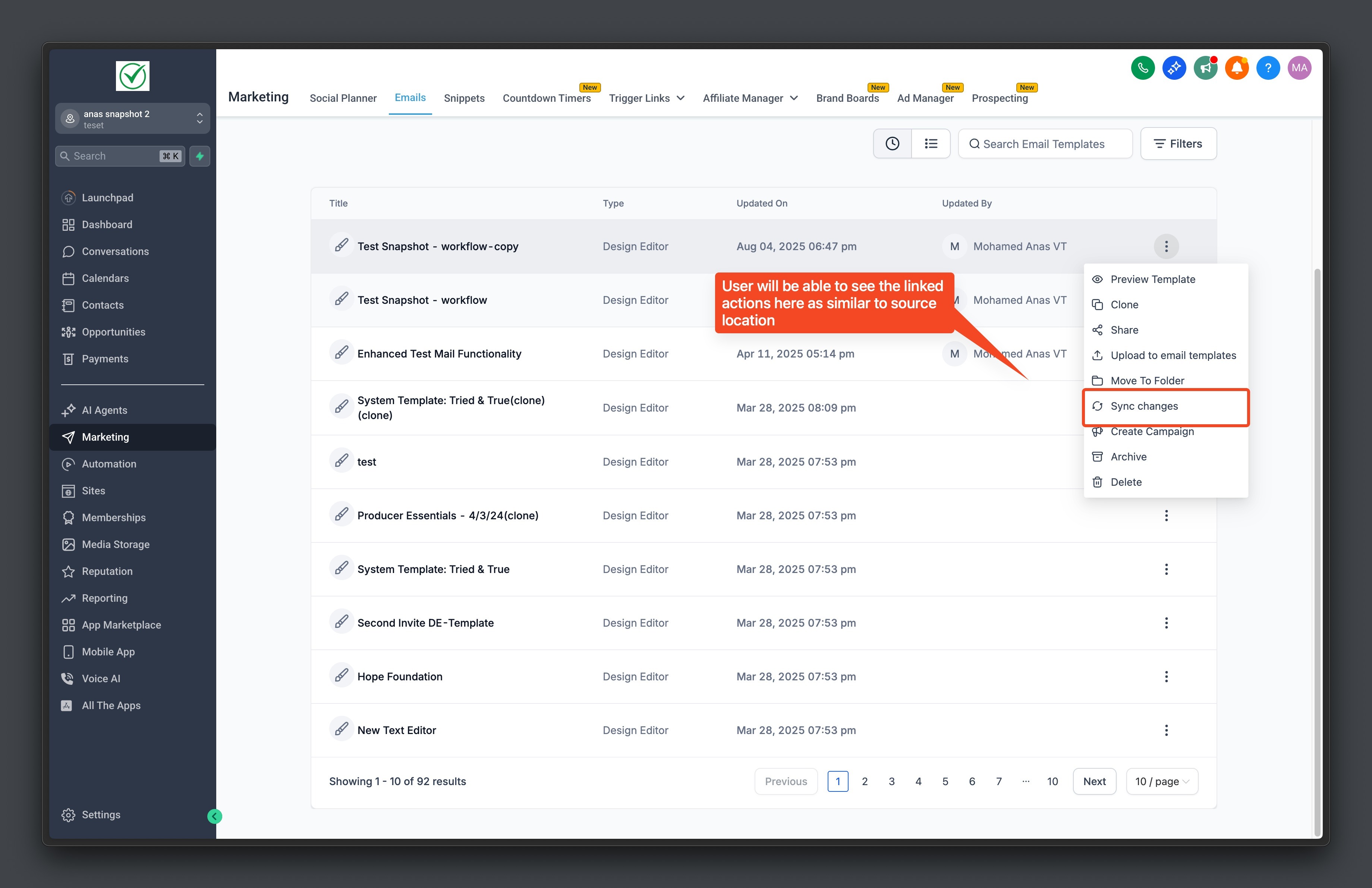 The target location’s template list now only displays original templates and workflows, eliminating the clutter caused by email action templates. These email action templates are still imported and mapped in the background, but they remain hidden from users. This enhancement streamlines the template management process and improves the syncing of workflows and templates.