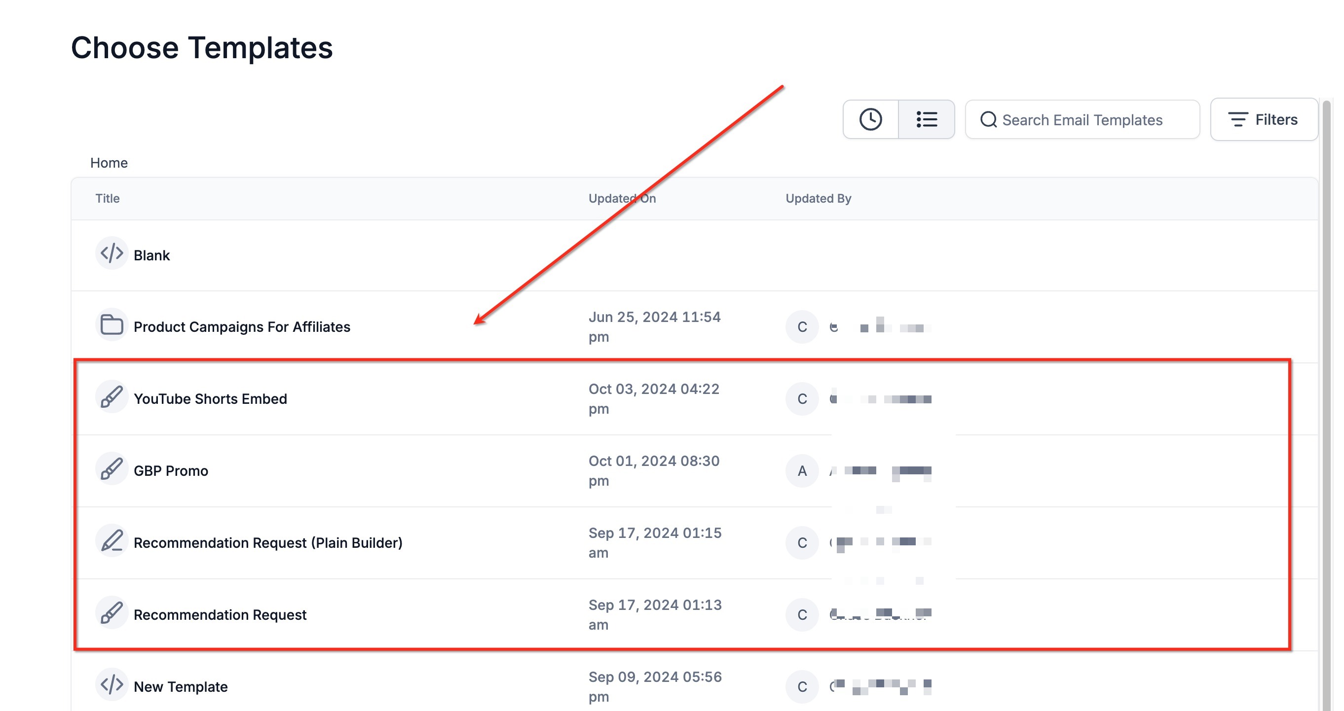 2. The Next Step is to select the Email Template which you would like to create a Marketing Email Campaign.