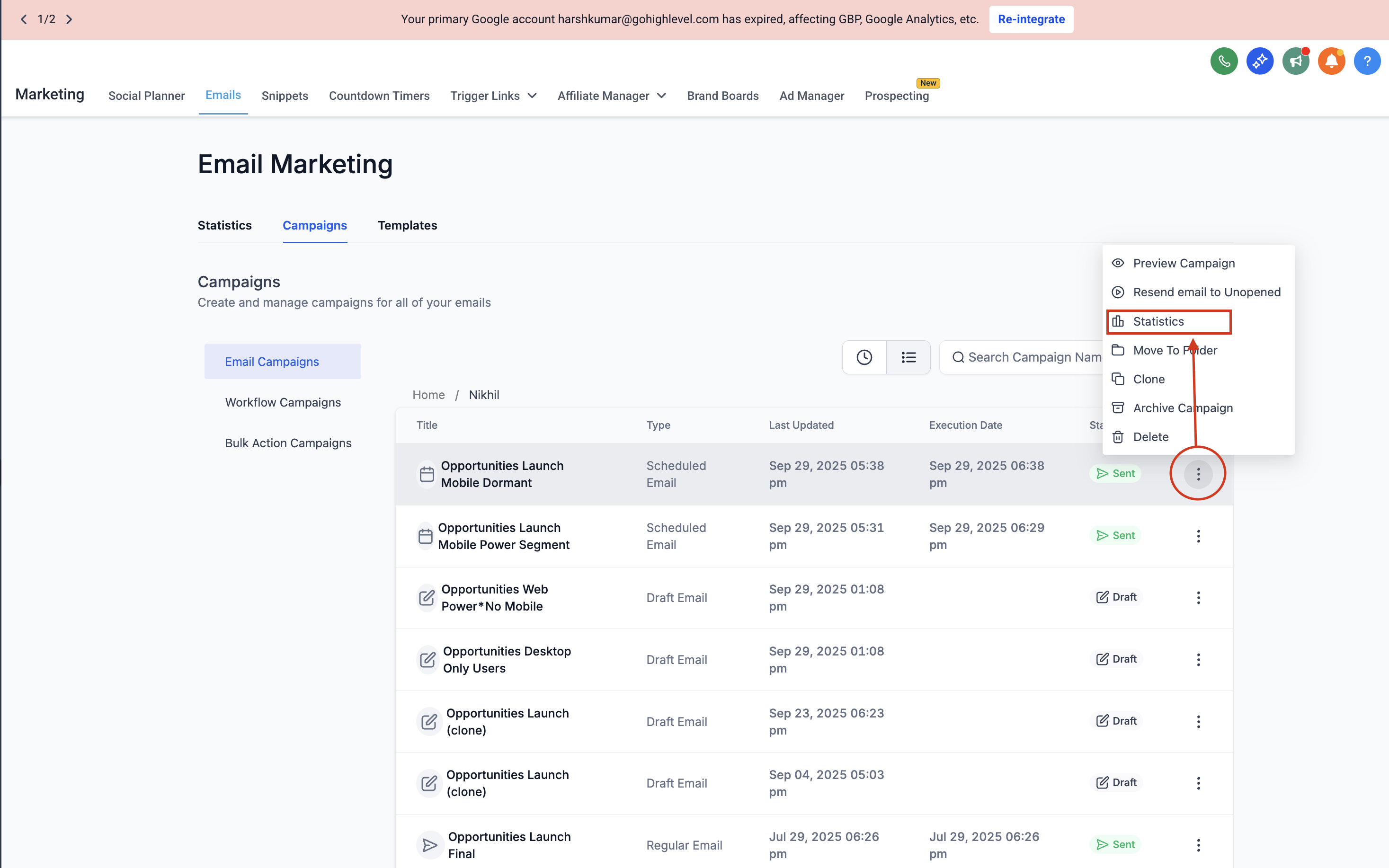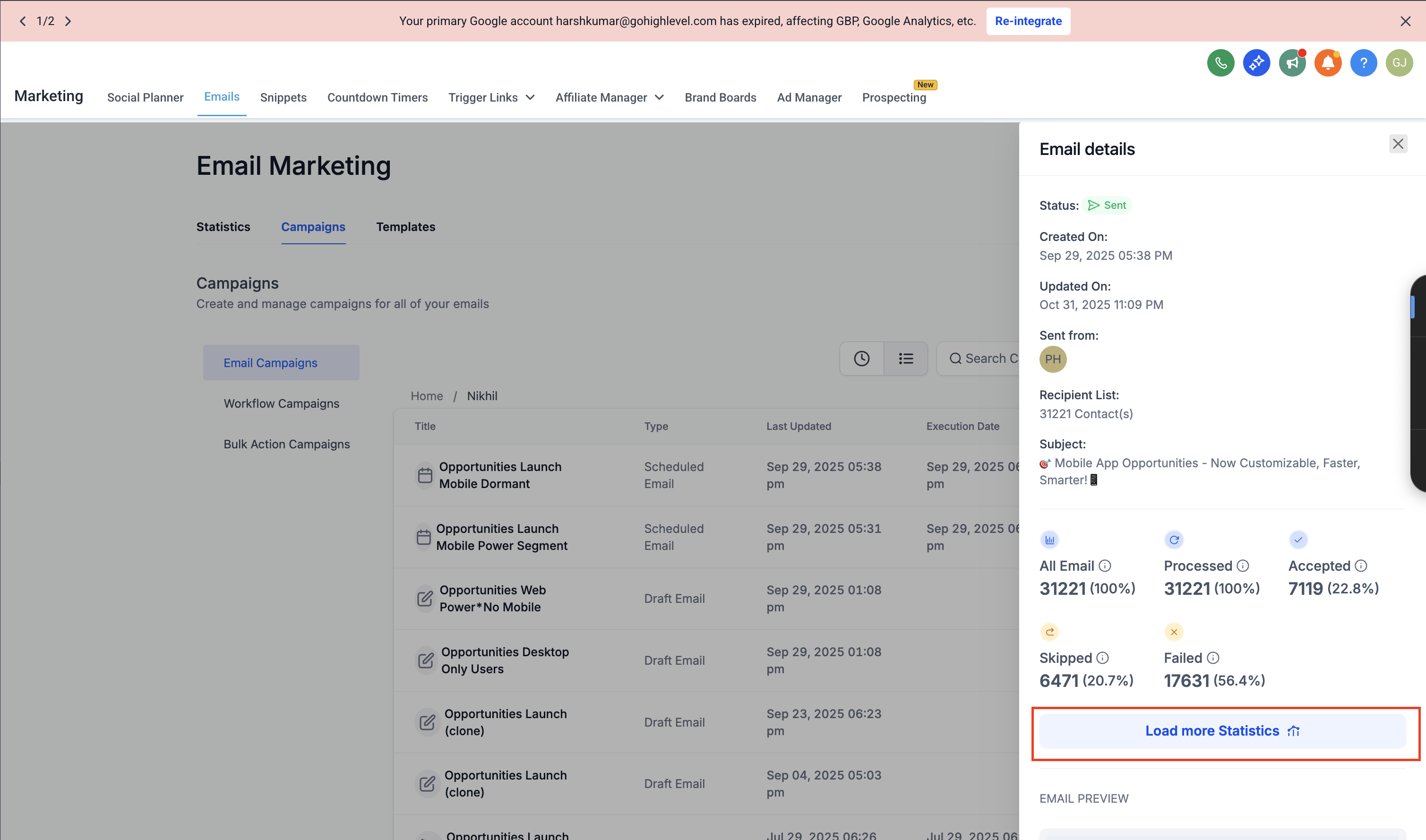 Note: Click tracking data only applies to emails that have been sent. Draft or scheduled emails will not display statistics until after they are delivered.