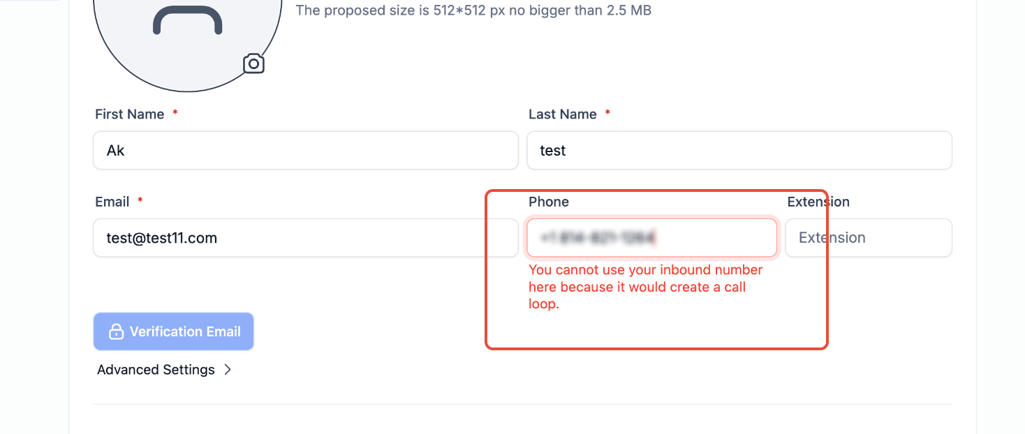 Using your CRM phone number here may cause some calls to fail because it can create a call loop. Learn more