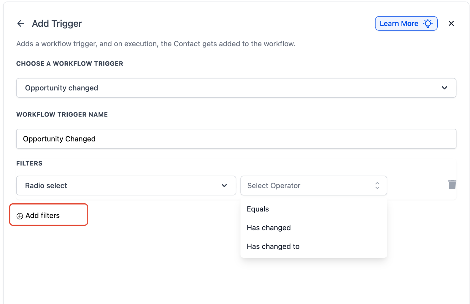 Unlike the Opportunity Status Changed trigger, which only tracks status updates, Opportunity Changed detects broader modifications such as lead value adjustments, pipeline changes, reassignments, tag updates, and custom field updates. This guide explains how the trigger works, how to configure filters, and how to use it to streamline automation.