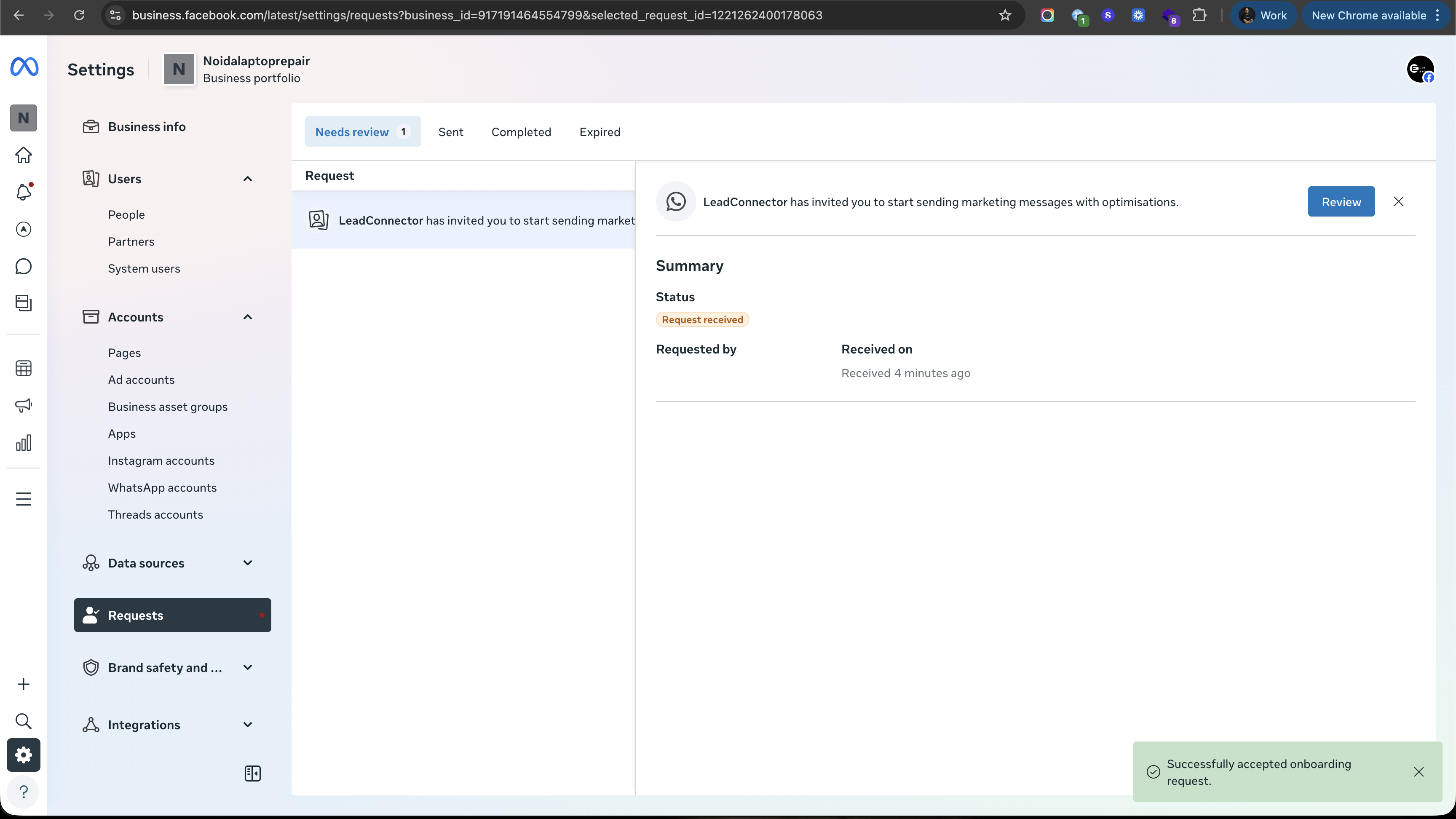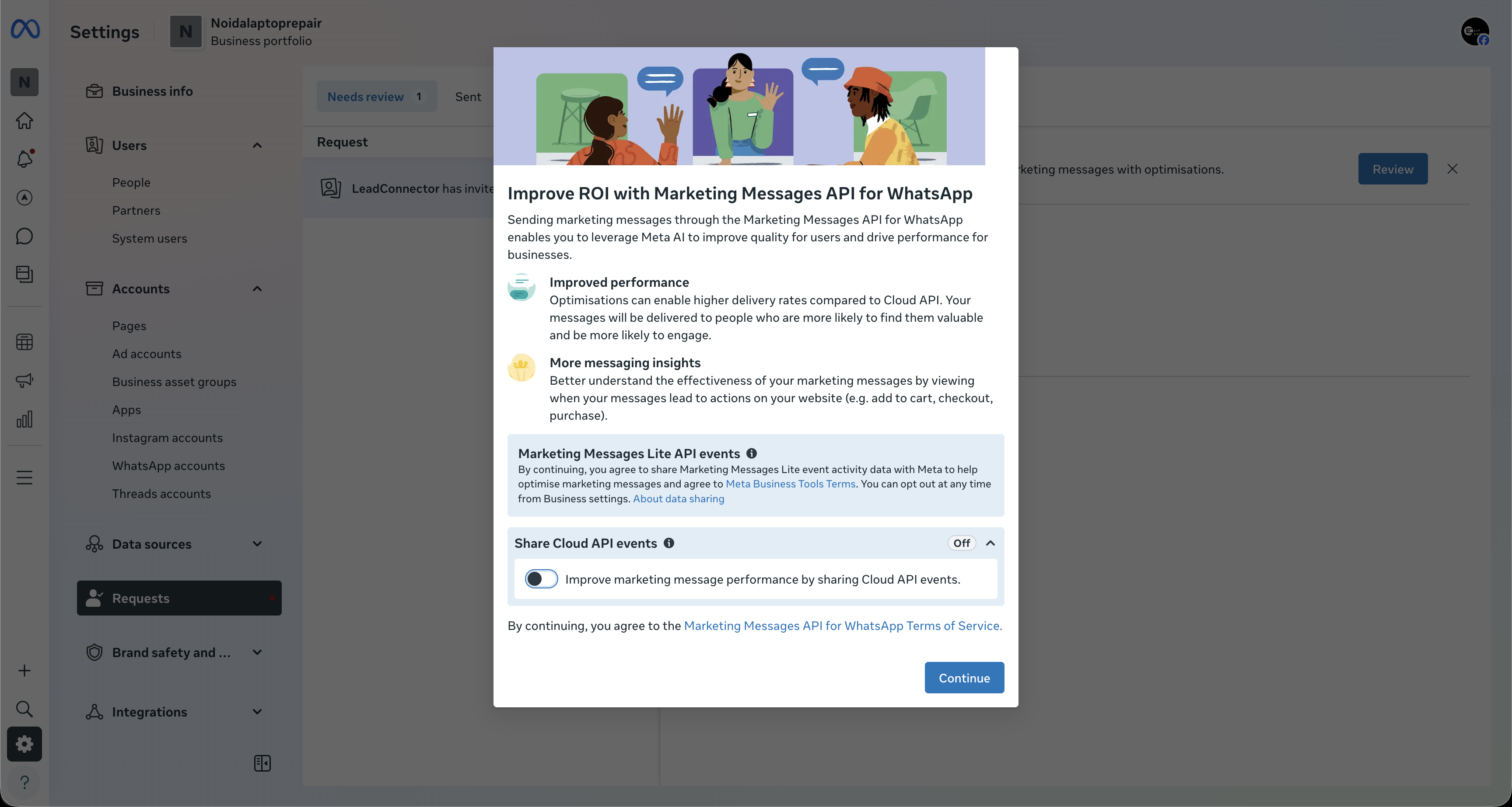You’ll see a prompt related to improving ROI with Marketing Messages API