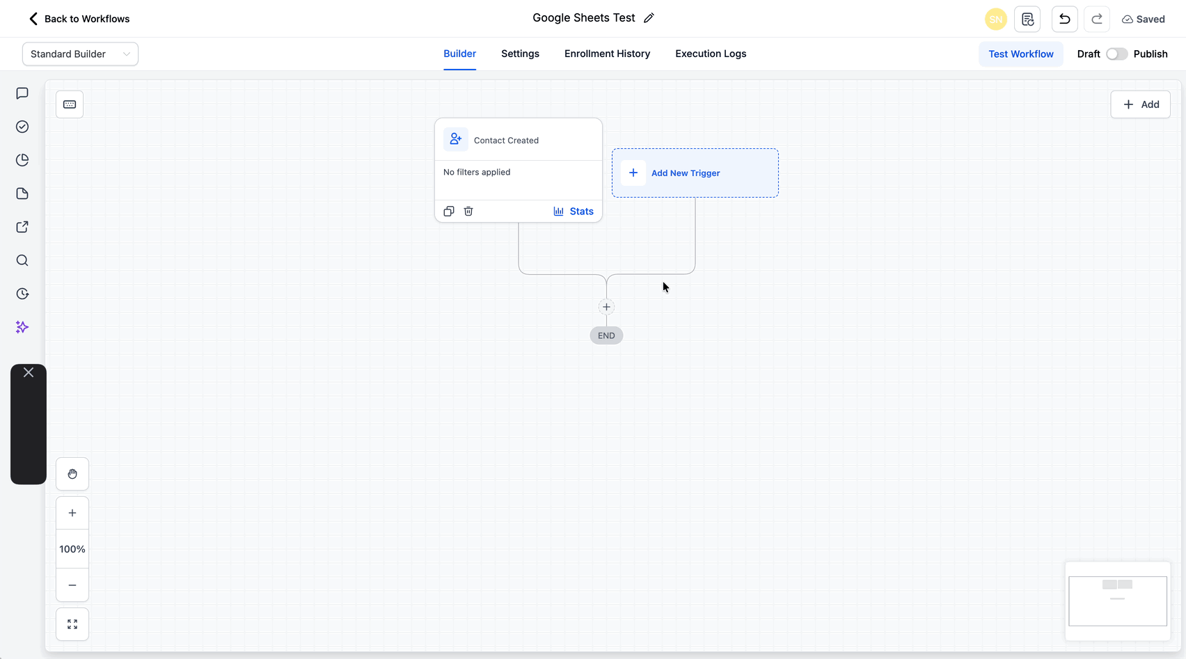 - Add a relevant trigger (for example: Contact Created, Form Submitted, etc.).