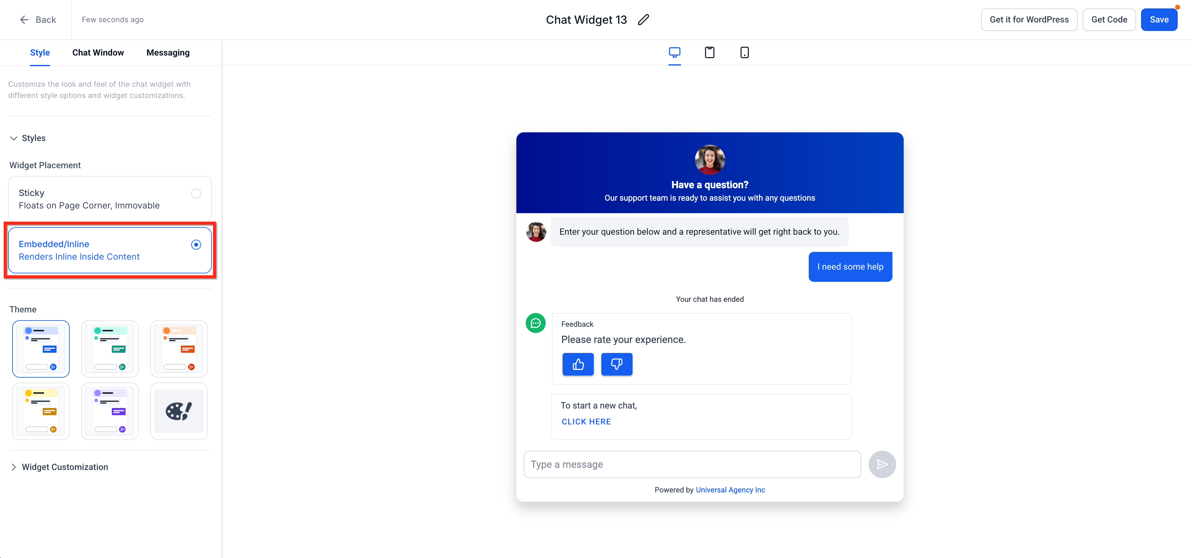 - Under Widget Placement, choose: Embedded / Inline (Renders inside content).