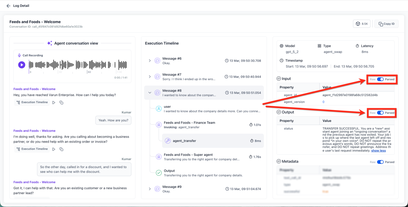 Agent Logs help you better understand and optimize AI behavior by providing:
