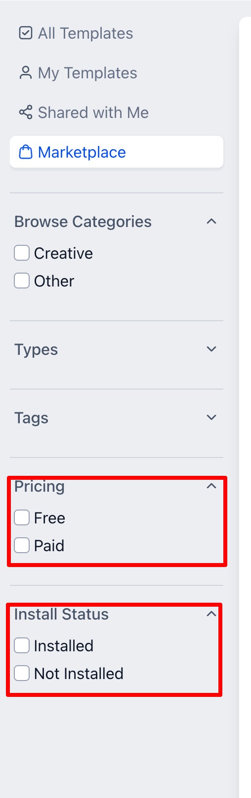 - Filter templates based on pricing and install status