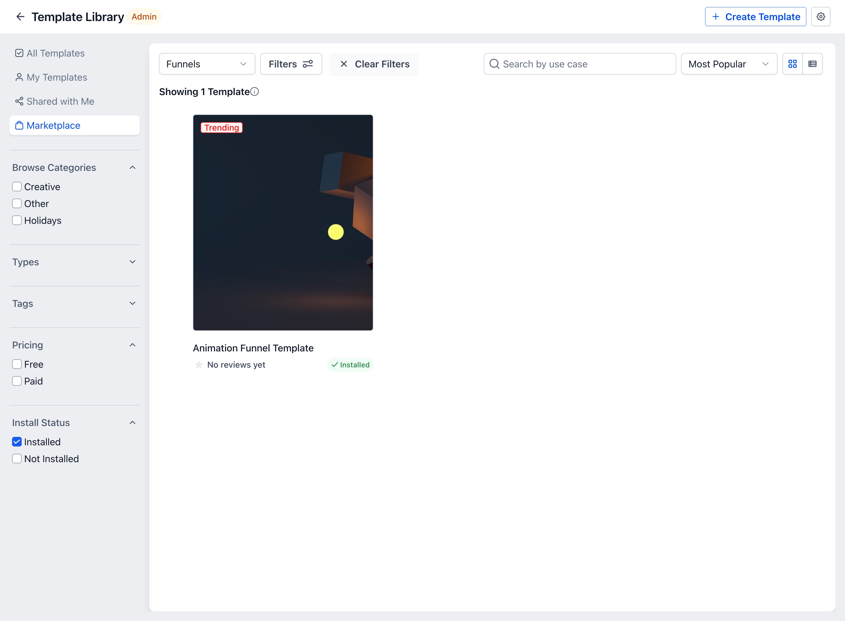 The Template Library is now integrated with the Marketplace, allowing you to discover, install, and sell templates, all in one place.