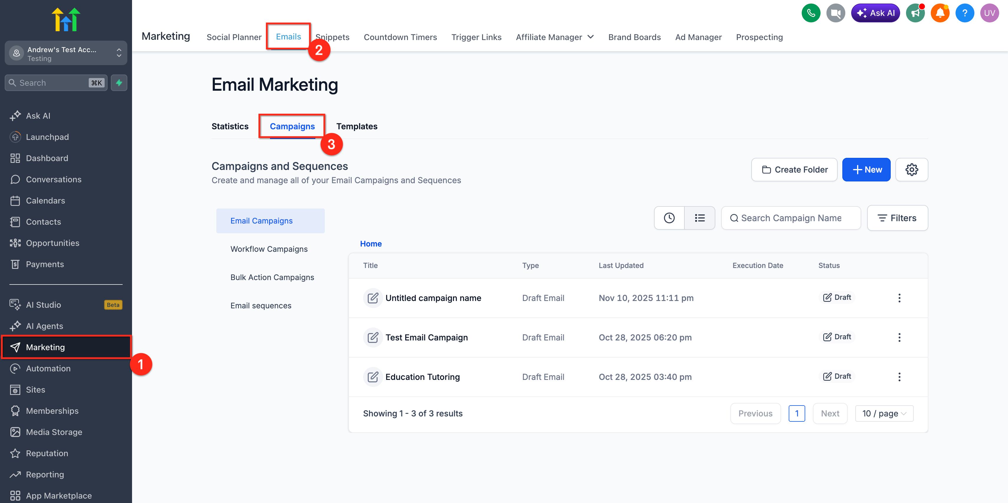 - Navigate to Marketing → Email → Campaigns.